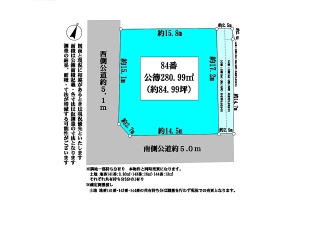 | 接道 | 南側公道5.0m 西側公道5.1m |